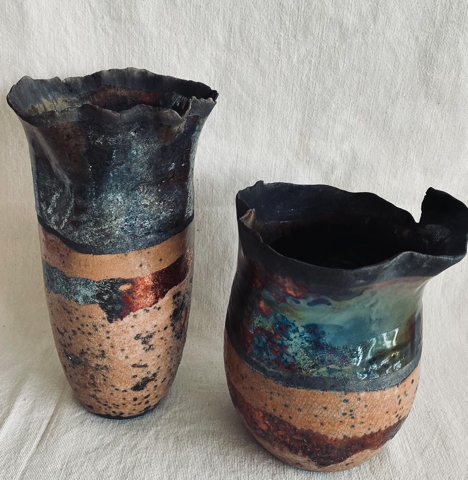 Le Mexique, grâce à mon mari, et l'Afrique, par mon enfance, restent mes grandes inspirations. Anciennement styliste et aujourd'hui céramiste, mes créations naissent de mes émotions et désirs, se matérialisant naturellement entre mes mains.